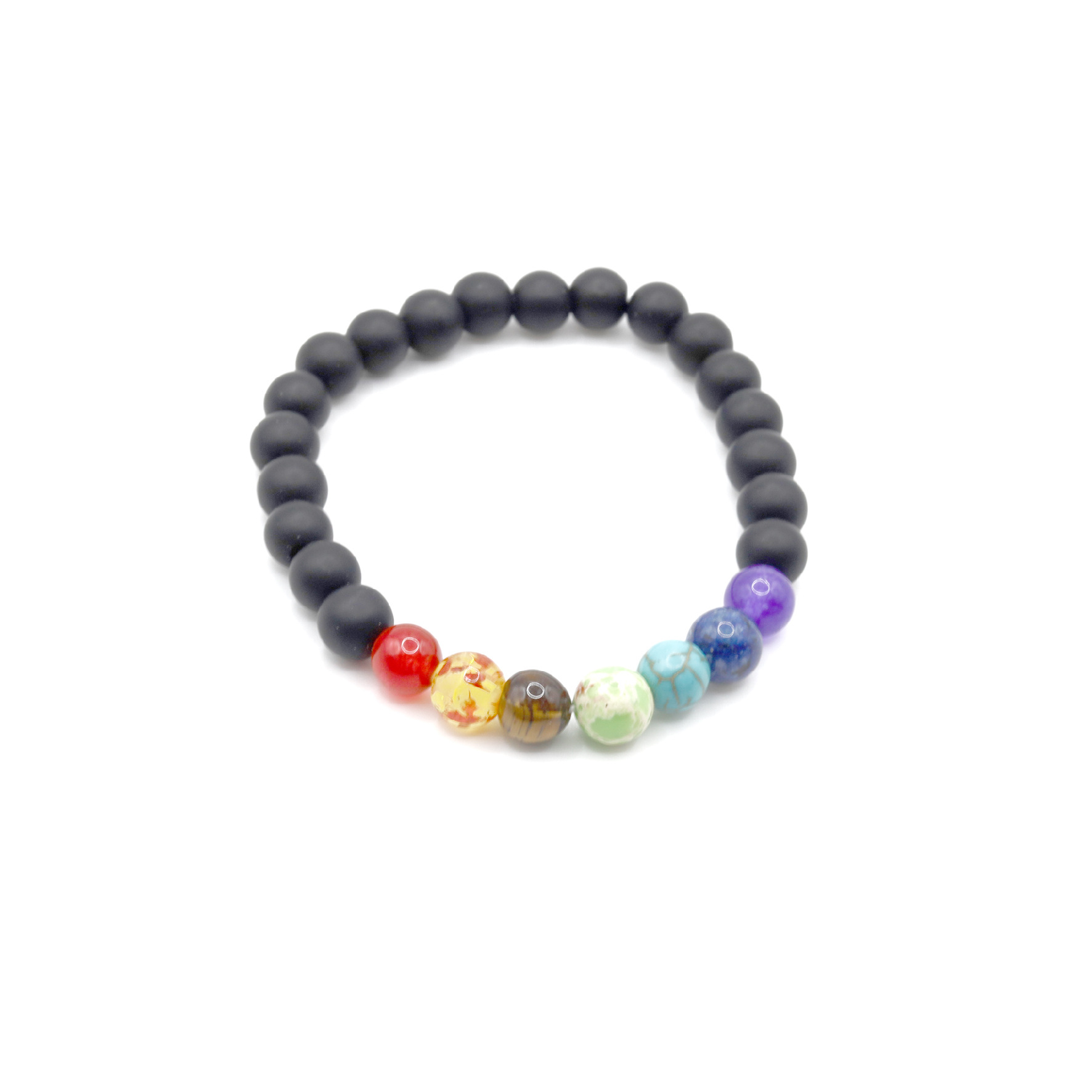 Chakra Beads Natural Stone Bracelet in Matt Black Shade