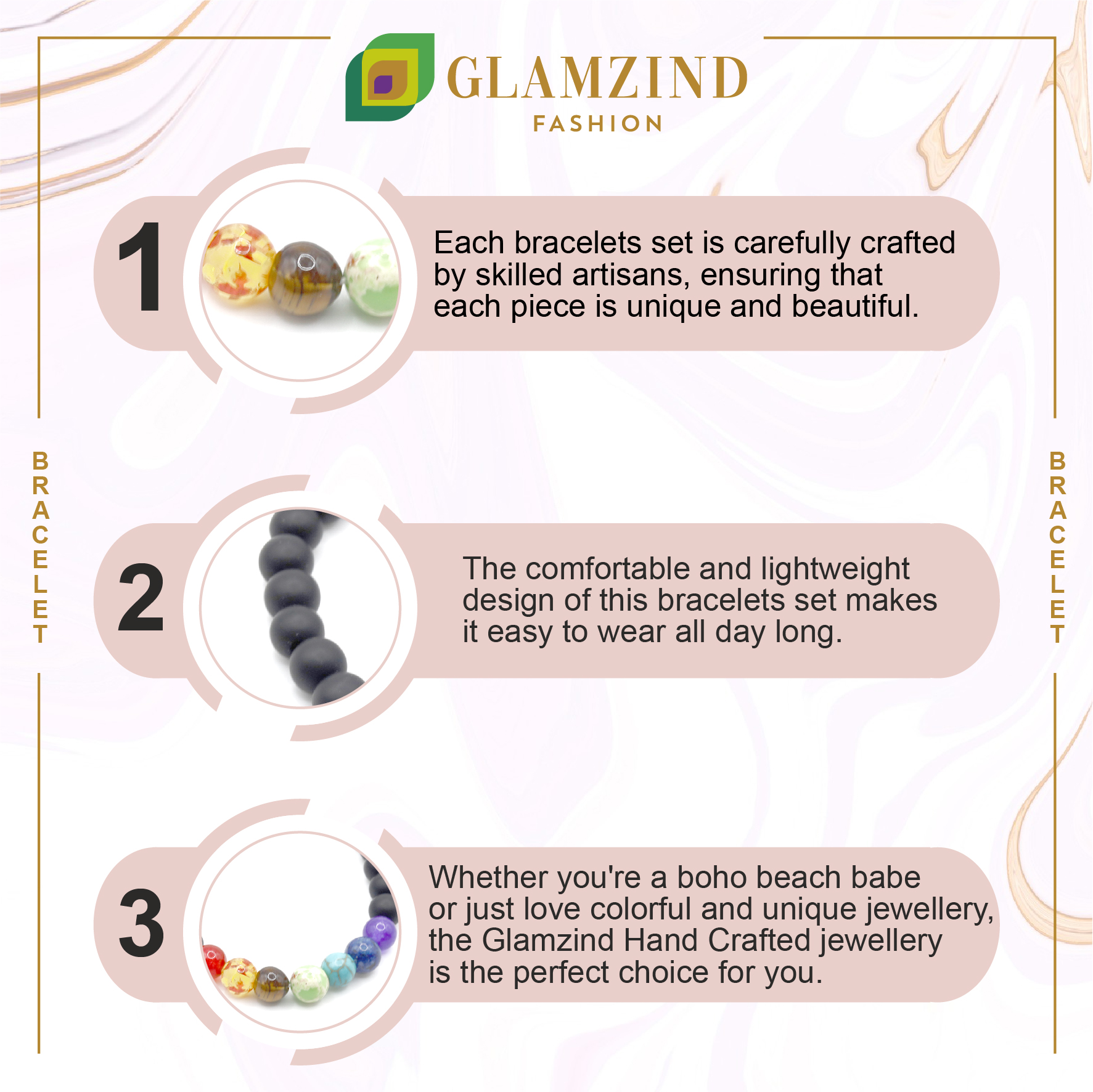 Glamzind’s Chakra Beads Natural Stone Bracelet in Matt Black Shade combines modern style with the healing power of natural stones. With its grounding properties and timeless design, this bracelet is the perfect choice for those looking to stay balanced while adding a chic accessory to their jewellery collection.