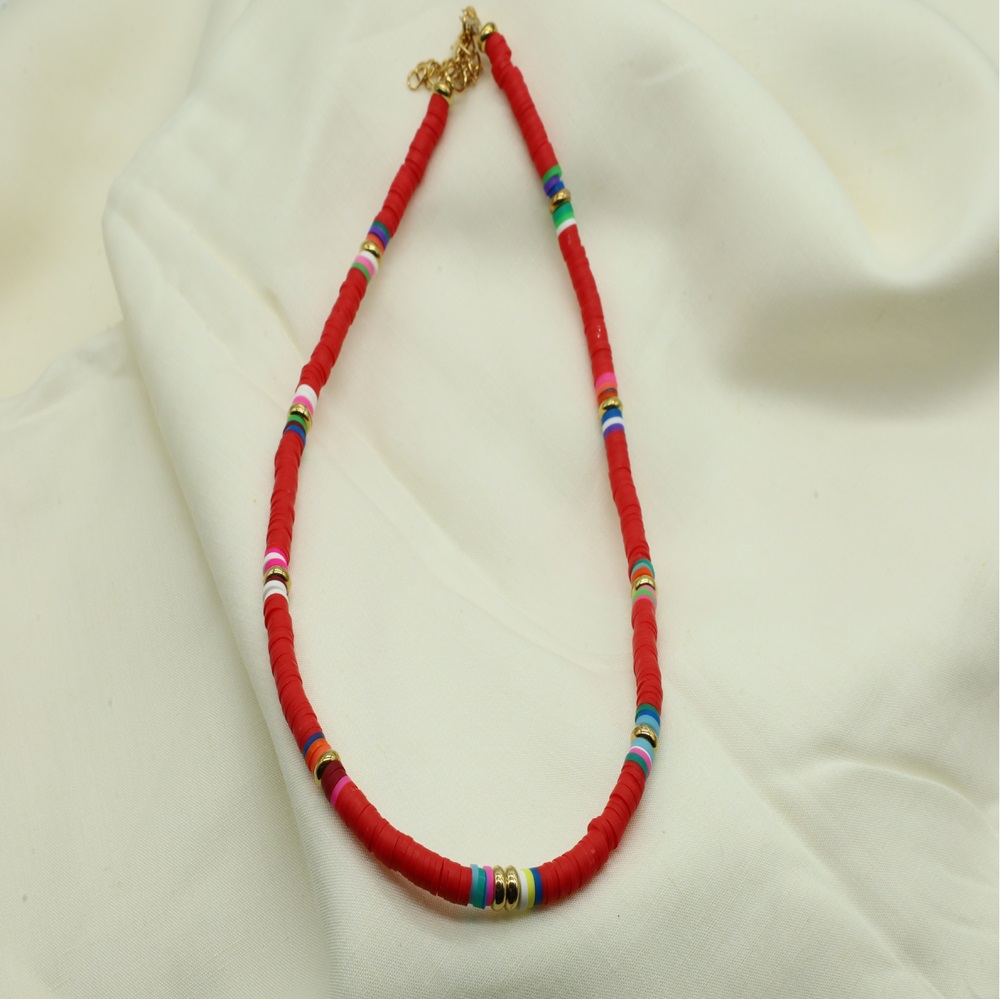 The Bohemian Heishi Beads Red Necklace makes an ideal gift for someone special. Whether for a birthday, anniversary, or to celebrate a special occasion, its bold design and boho flair make it a cherished present. Perfect for someone who enjoys colorful, handcrafted jewellery with a playful yet elegant vibe.