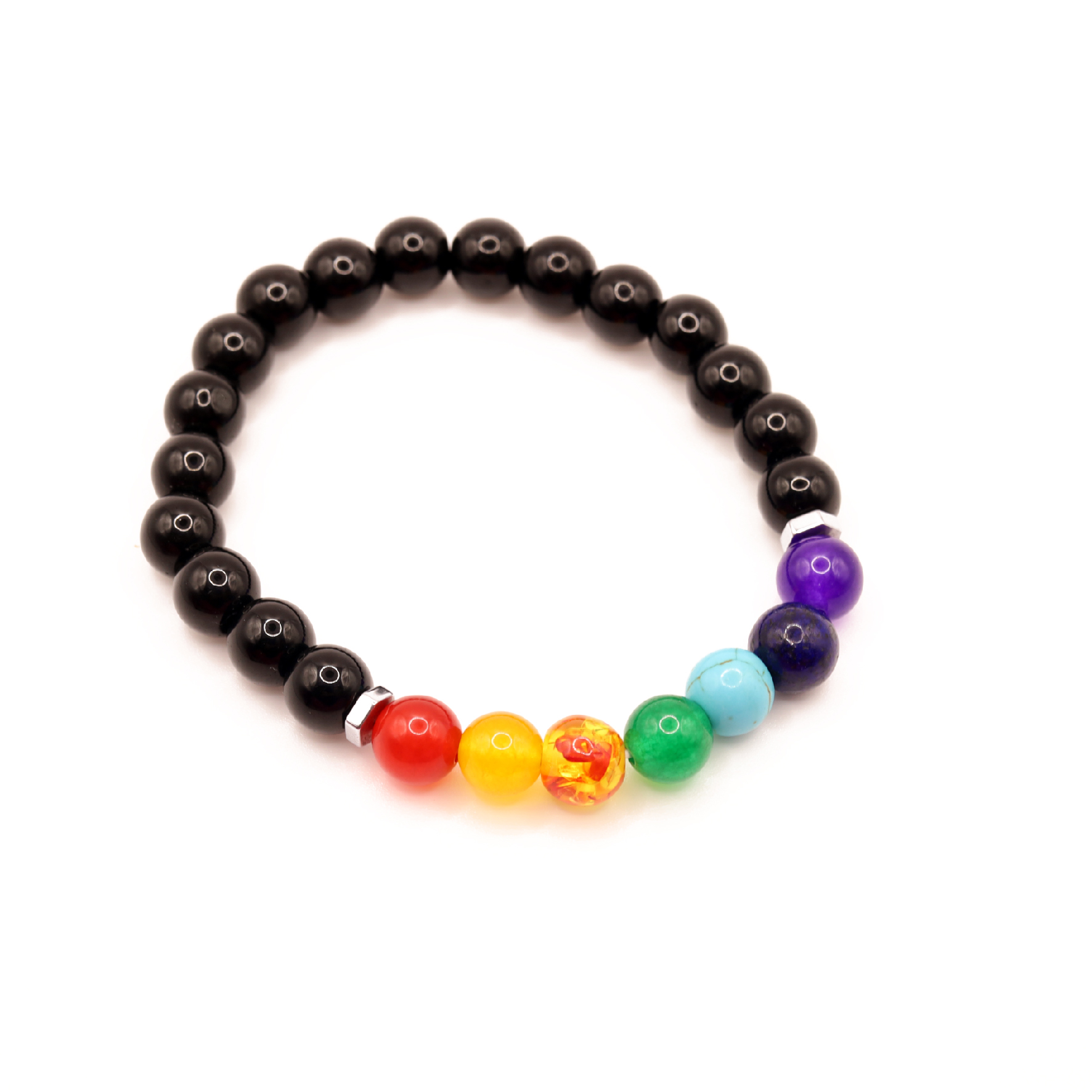 This bohemian bracelet features sleek, shiny black beads that not only offer a modern, stylish look but also promote healing energy. The combination of deep black tones and soothing design makes it a perfect accessory for both fashion and mindfulness.