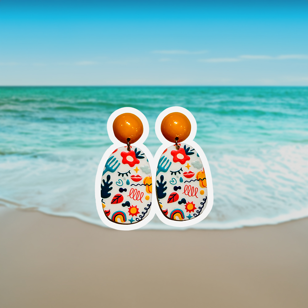 Our Sunset Mirage swirl dangles capture the warmth of a setting sun with their vibrant, swirling design. Their captivating look adds a bold, artistic touch to any outfit, perfect for making a statement with your style.