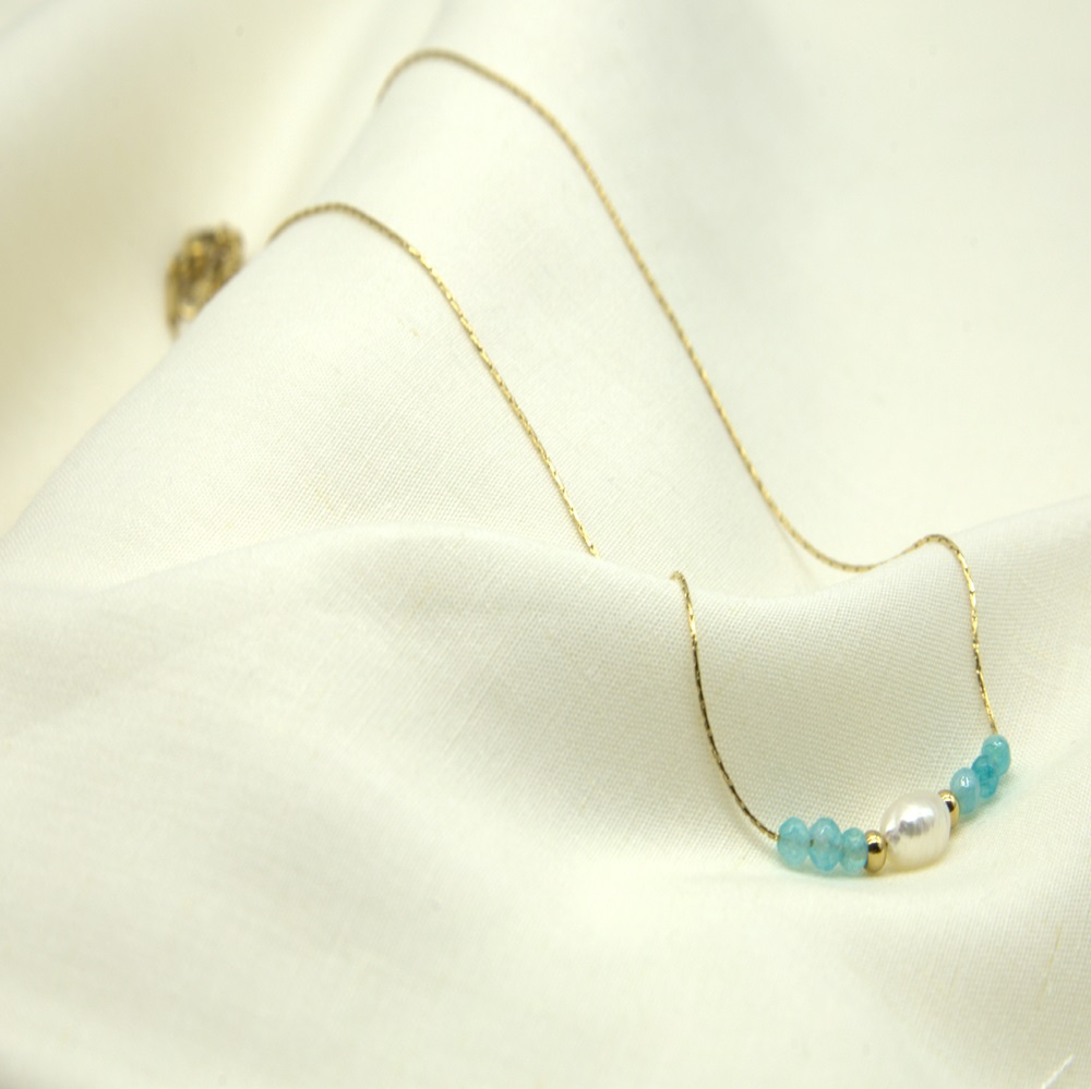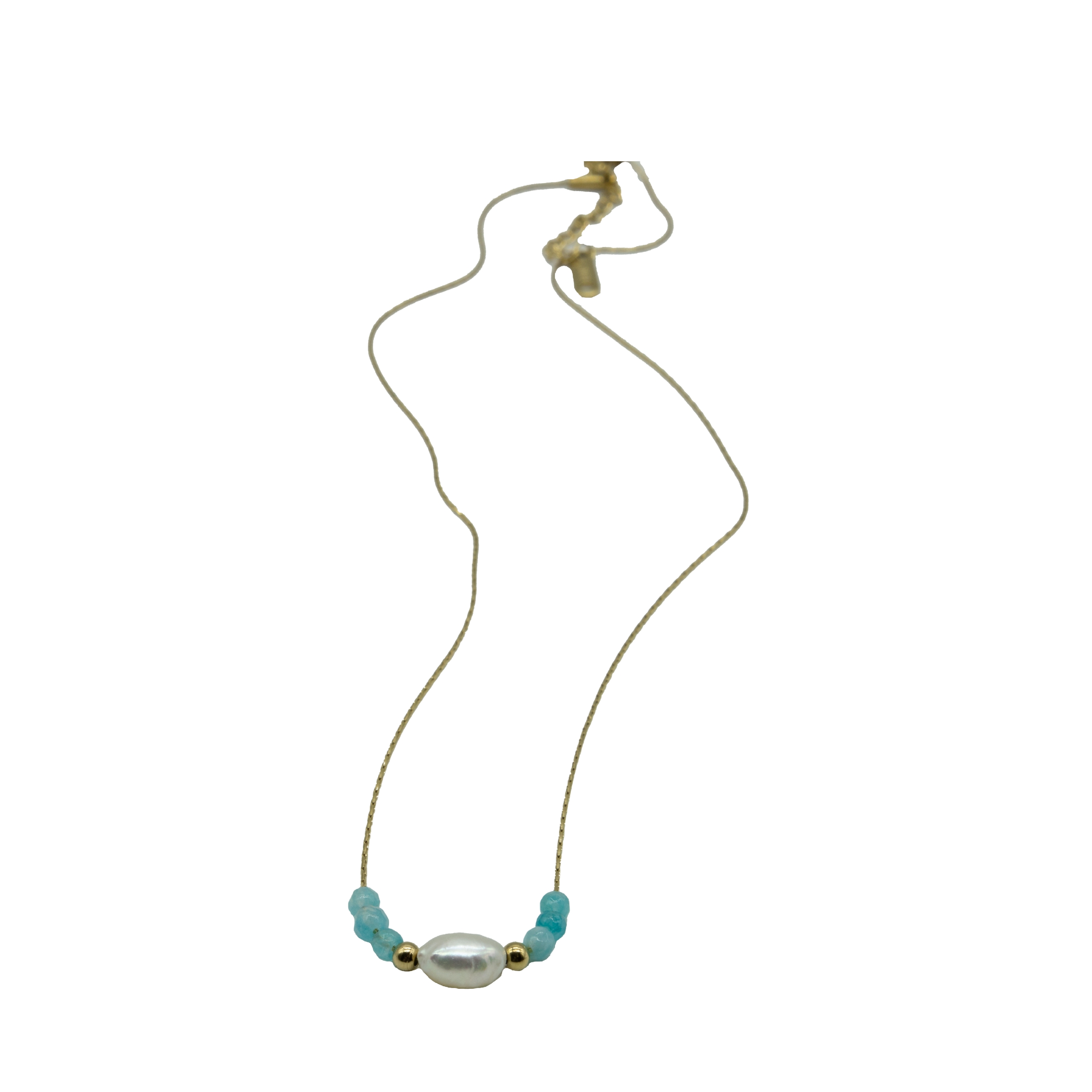 This necklace features a stunning combination of delicate turquoise beads and soft pearls, creating a harmonious design that is both striking and refined. The turquoise beads provide a fresh, calming energy, while the pearls offer a touch of classic elegance. Whether worn for casual outings or special occasions, this necklace adds a graceful, yet vibrant, flair to any ensemble.