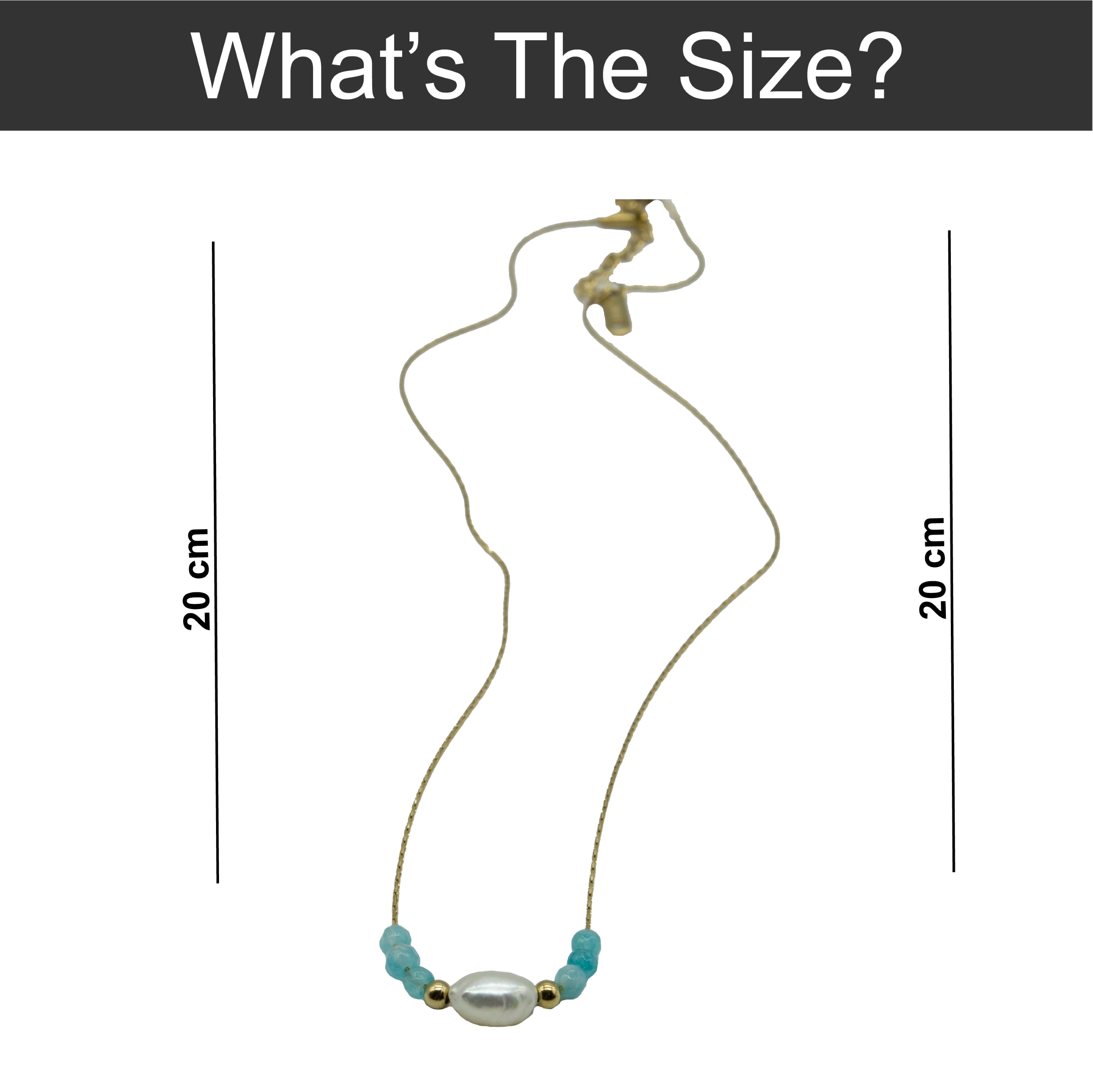 The Delicate Turquoise Beads and Pearl Chain is thoughtfully handcrafted by skilled artisans, combining the refreshing hues of turquoise beads with the timeless elegance of pearls. This necklace is designed with care and precision, ensuring both beauty and durability, making it a perfect addition to any jewellery collection. Its delicate design adds a sophisticated and vibrant touch to any outfit.