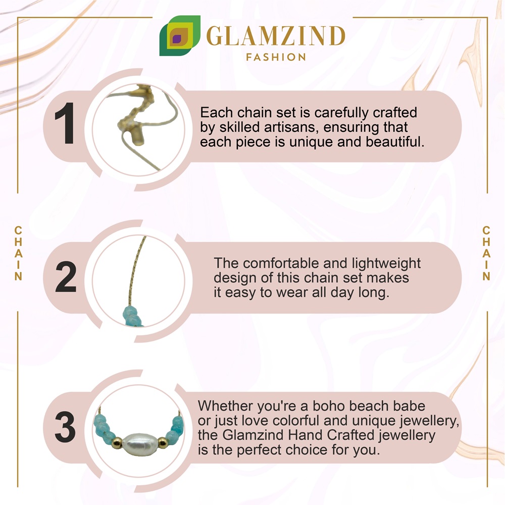 Glamzind’s Delicate Turquoise Beads and Pearl Chain is the perfect accessory for those who appreciate handcrafted, nature-inspired jewellery. With its superior craftsmanship, beautiful turquoise and pearl combination, and timeless design, this necklace is a must-have addition to any jewellery collection. It effortlessly enhances your look with sophistication, charm, and a touch of color.